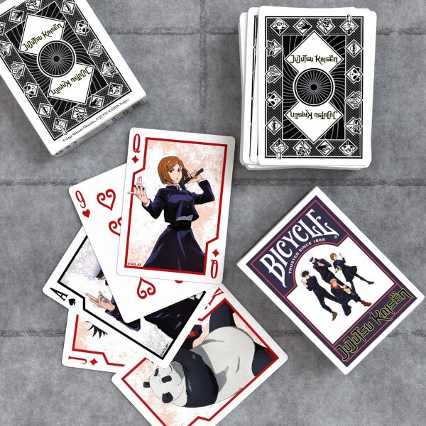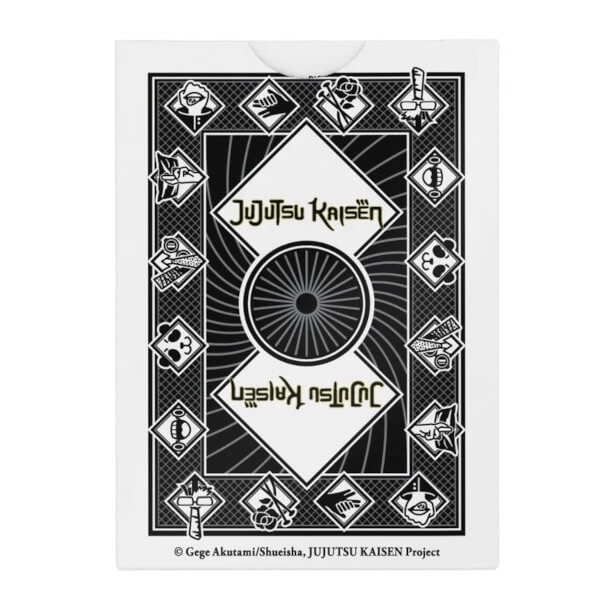 Disse unikke spillekort præsenterer et specialdesignet kortbagside med Tokyo Jujutsu High School-logoet og ikoniske figurer på billedkortene. Oplev fantastiske illustrationer af Yuji, Megumi, Nobara og Gojo, mens kortenes detaljerede symboler er inspireret af Sukuna’s tatoveringer.